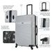 The InUSA Resilience Large 28-Hardside Spinner Luggage is lightweight and durable, with four spinner wheels, a retractable trolley system, and ergonomic handles. The interior is fully lined with zippered compartments and elastic cross straps. The luggage can stand upright with four side studs and smooth gliding zippers.