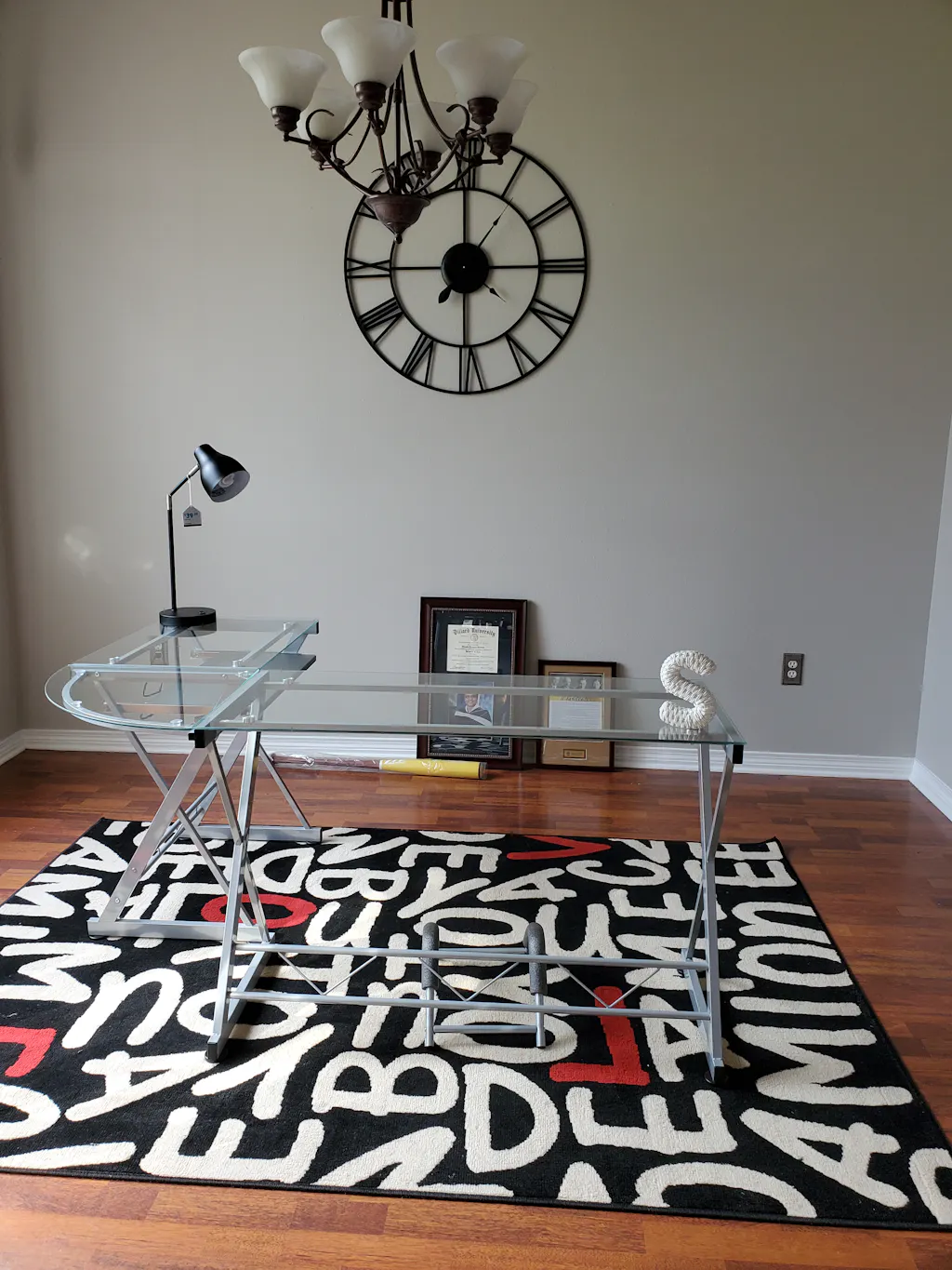 With the long and short sides reversible on the left or right hand. It is made with a heavy-duty 8 mm tempered safety glass desktop, scratch-resistant powder-coated steel frame. Its slide-out keyboard shelf equipped and is made of MDF wood laminate. The square glass desktop panels can each hold up to 66 lbs, the corner glass desktop panel have a 44 lbs weight capacity, and the keyboard shelf can hold up to 22 lbs. Color: Clear